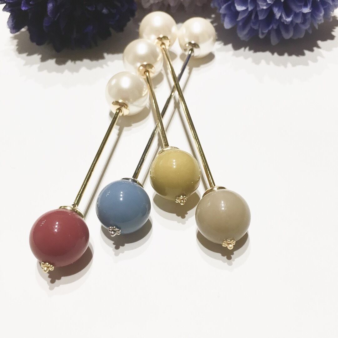 4色のカラービーズとパールのヘアバトンです( ˊᵕˋ* )