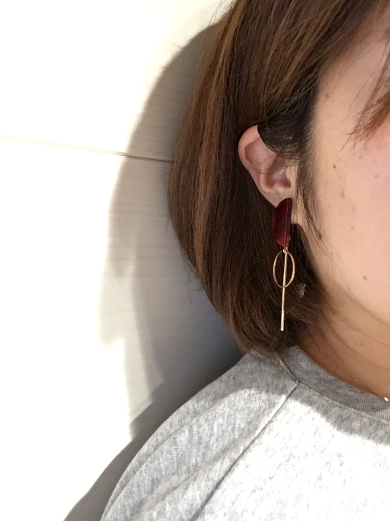 濃いめのレッドとゴールドのラウンドフレームを合わせたピアスです( ˊᵕˋ* )シンプルな組み合わせですが、存在感抜群のピアスだと思います!