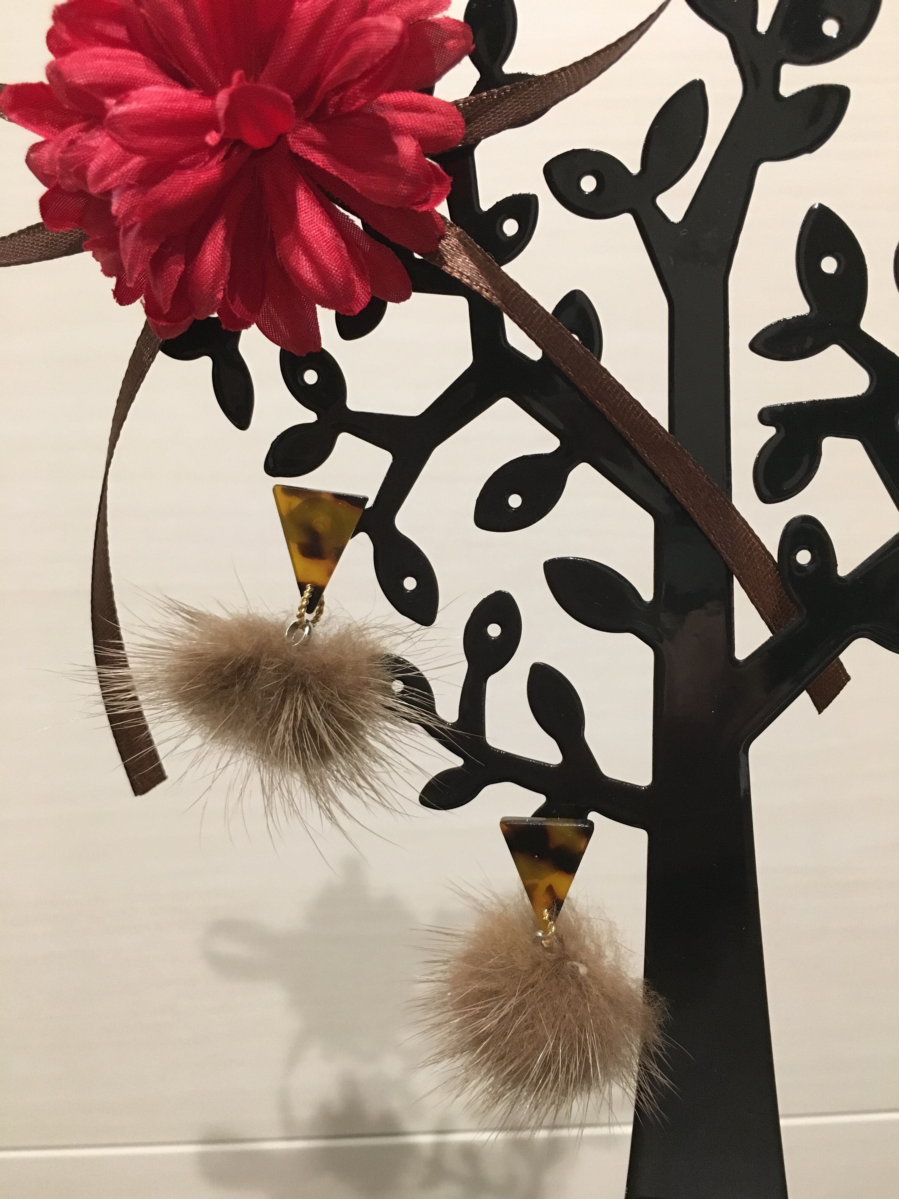 こちらは三角形のべっ甲にミンクファーを合わせたピアスです。