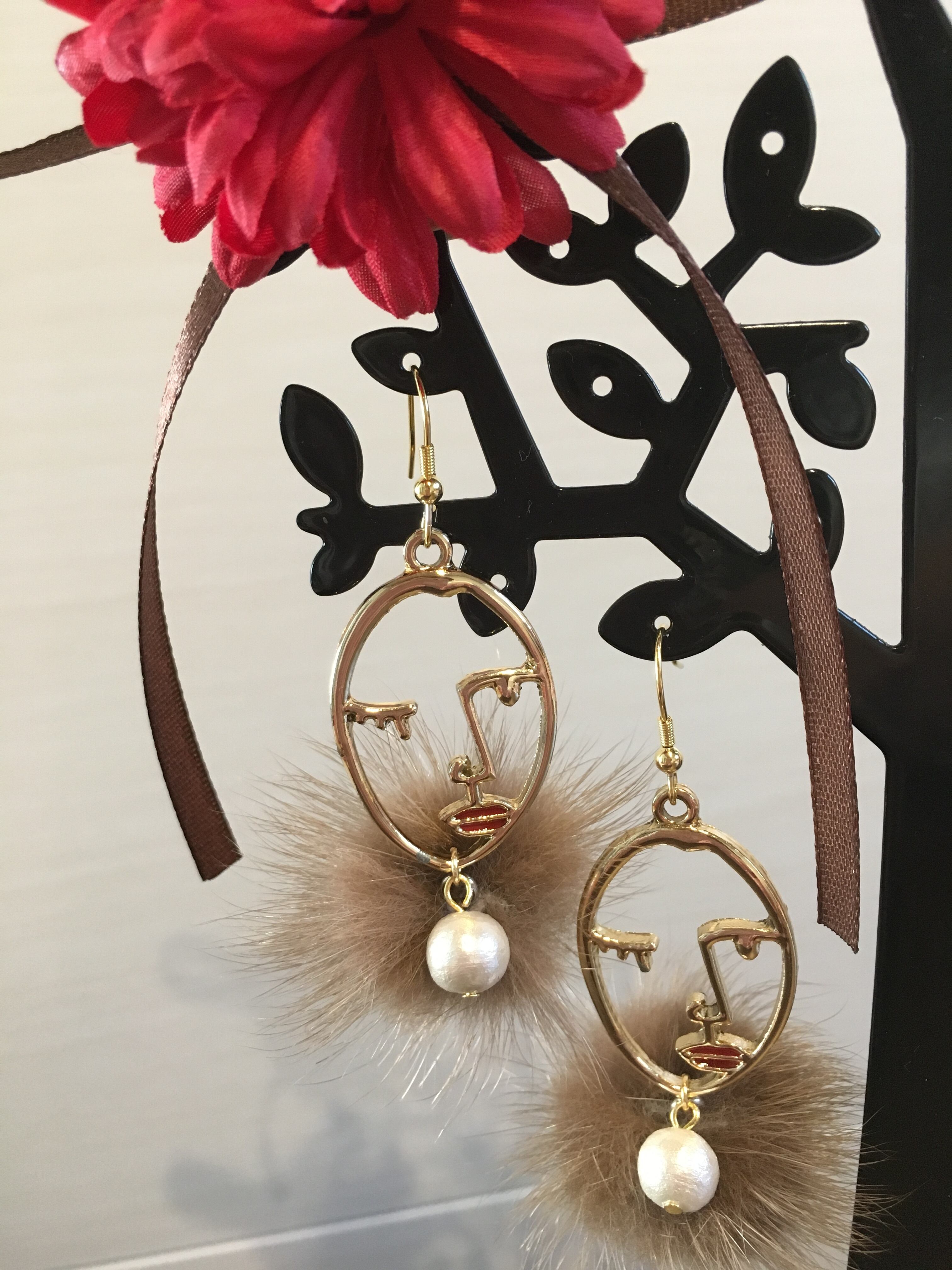 赤リップフェイスとミンクファーのピアス(ワケあり)
